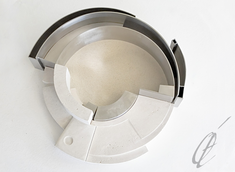 > Généralement, les sculptures sont constituées de plusieurs éléments aux formes sobres, raffinées, puissantes qui “s’installent “ par assemblage ou juxtaposition sur des socles appropriés ou directement au sol.