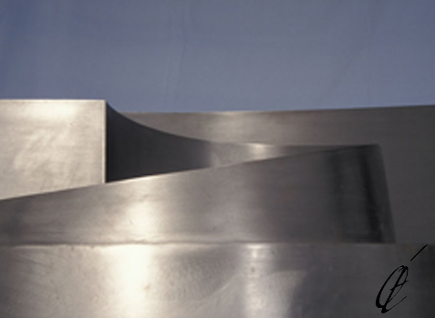 > Avec l’introduction du métal, on voit les plaques se courber et les formes s’adoucir. La structure primaire des pièces est inscrite dans des géométries abstraites qui se jouent de la symétrie. D’autres topologies apparaissent : le rond, la sinusoïde, la spirale, l’ellipse...