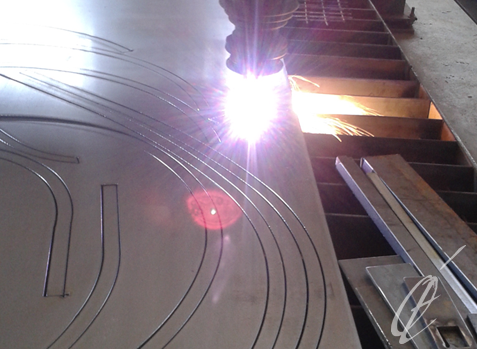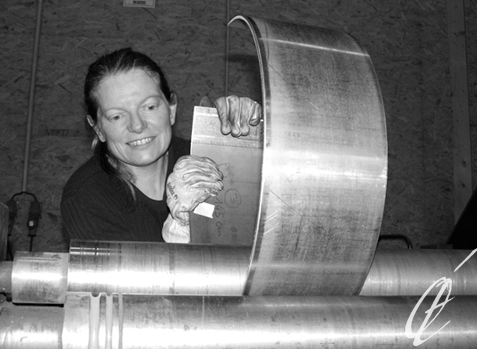 Elle travaille le métal dans d’épaisses plaques d’acier ou d’inox qu’elle découpe, roule, soude, assemble, meule,satine et poli. Lorsqu’il s’agit de dessiner dans l’espace pour ses “METALLOgraphies“, elle s’empare de barres et de tubes d’acier qu’elle scie, cintre, forme, développe, soude et fait thermo-laquer ses sculptures.