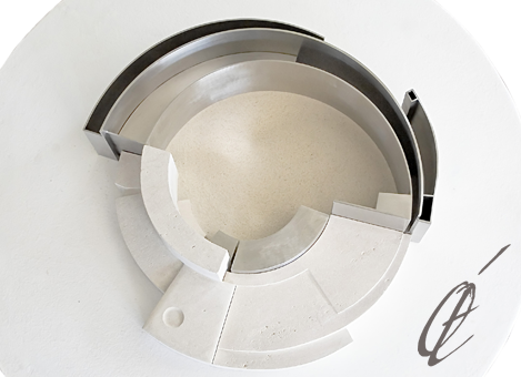 > Odile Vuillemin s'approprie les codes formels de l'architecture et les détourne dans des transpositions poétiques de l'espace : les sculptures présentent des ouvertures, des passages, des parcours sous formes de labyrinthes, de spirales centripètes ou centrifuges. Les proportions choisies et l'utilisation de certaines règles de perspective confèrent à ce travail un aspect “micro- monumental“ très caractéristique qui joue avec l’échelle du spectateur.