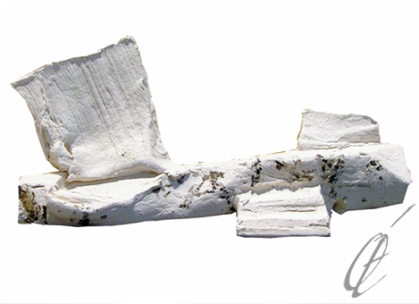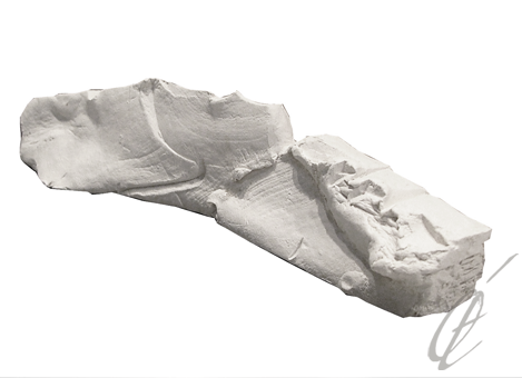 Dans la même énergie mais en modelage, je créé ensuite une soixantaine de petites sculptures. Une re-création, cette fois-ci avec le seul matériau finalement capable de m’offrir une telle liberté en volume : la terre. Arrachée, lacérée, découpée, j’observe et décide de me laisse guider par toute la richesse des “cadeaux“ préexistants qui me sont offerts par la matière : juxtapositions aux significations innombrables sur-lesquelles j’interviens au minimum. Les sculptures naissent en lien étroit avec les dessins. Je pétrifierai ces formes par la cuisson et les immortalisérai dans des fontes d’acier et d'aluminium“.