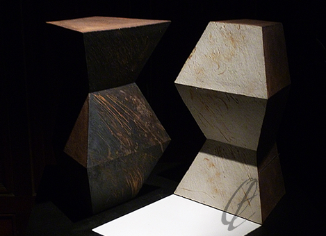 Le travail se situe également sur les notions d’échelle et de micro-monumentalité. Le rapport de la sculpture à l’espace environnant est pris en considération par la conception de socles spécifiquement proportionnés pour chacune.